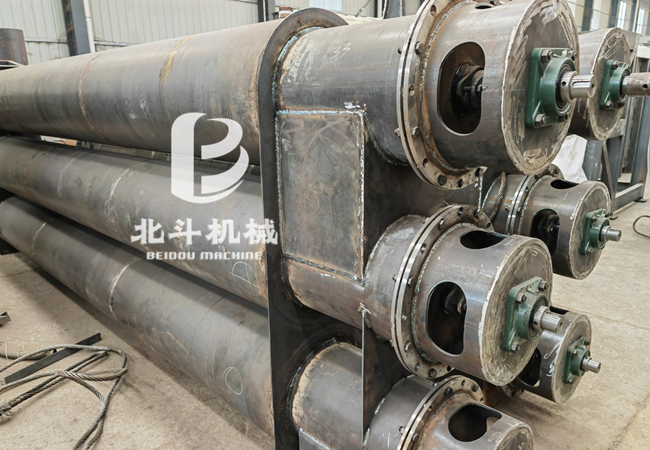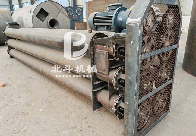 冷炭出料機可以達到冷卻物料的目的,同時減少占用空間。水冷內螺旋輸送機包括進料單元、出料單元、筒體、冷卻單元、驅動單元和支撐單元,進料單元和出料單元分別設置於所述筒體的兩端,驅動單元使筒體圍繞其中心對稱軸回轉,支撐單元支撐筒體,所述筒體包括外筒體和內筒體,靠近進料單元的外筒體外周設置有一定長度的夾套,冷卻套筒從一端進水,從另一端排水,水和炭不接觸,提高了炭的品質,具有更好的冷炭效率,從而將成品炭的溫度降至常溫。
